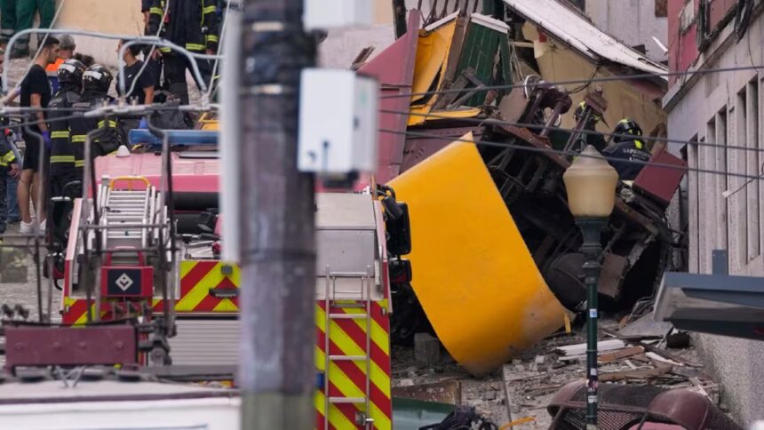 Al menos 15 personas han muerto y 20 han resultado heridas este miércoles en Lisboa después de que el tranvía funicular de Gloria descarrilara y chocara contra un edificio en pleno centro de la capital portuguesa. El vehículo, con capacidad para 42 pasajeros, quedó completamente destrozado tras volcar en la empinada cuesta junto a la Avenida da Liberdade.