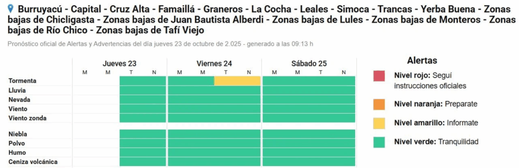 Tras un jueves marcado por el calor, el Servicio Meteorológico Nacional (SMN) informó que Tucumán se encuentra este viernes bajo alerta amarilla por tormentas fuertes. Según el organismo, el fenómeno afectará a gran parte de la provincia con lluvias de variada intensidad.