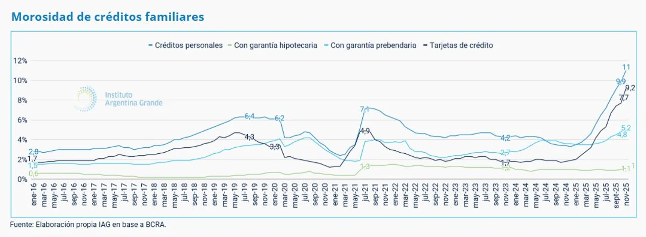 La situación refleja el agotamiento de los «ahorros» y la imposibilidad de muchos usuarios de refinanciar pasivos en un contexto donde el costo de vida absorbe la totalidad de los ingresos disponibles.