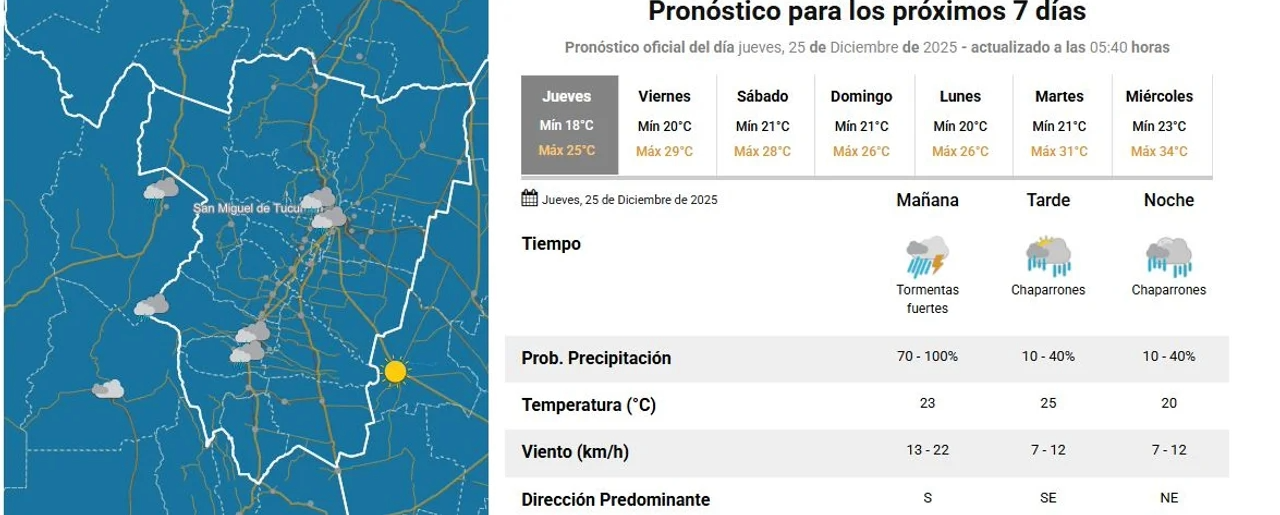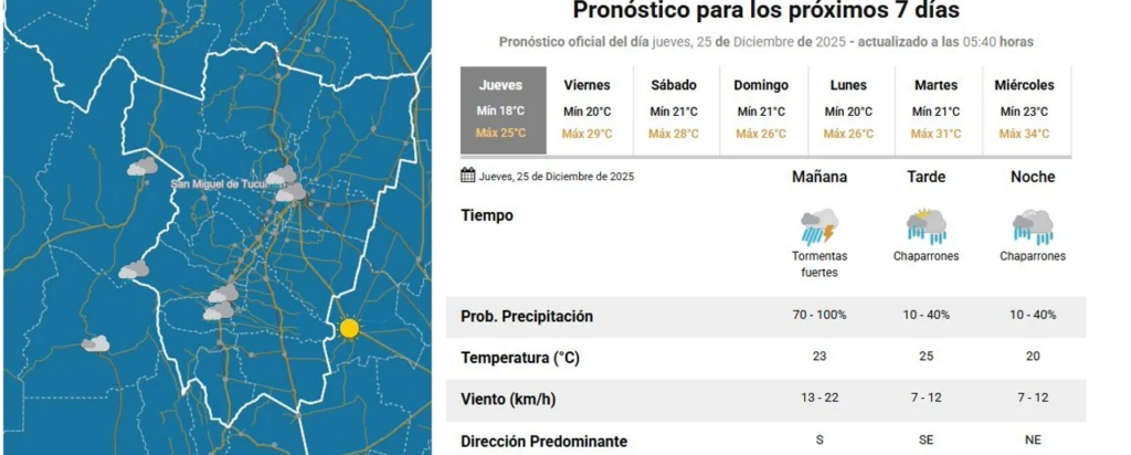 El alivio térmico llegó a Tucumán durante la madrugada de este jueves 25 de diciembre. A pocas horas del brindis de Nochebuena y en el inicio de la Navidad, el cielo se cubrió y una lluvia persistente comenzó a registrarse en gran parte del territorio provincial.
