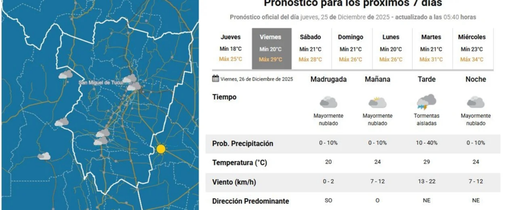 De acuerdo al pronóstico oficial, el viernes se presentará con cielo mayormente nublado y probabilidad de tormentas aisladas hacia la tarde.