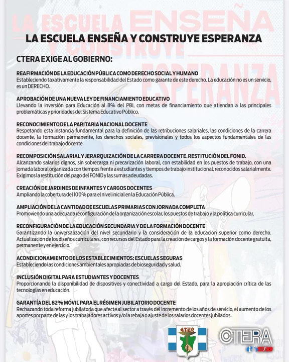 «ATEP acompaña las exigencias de CTERA al Gobierno Nacional, reafirmando su compromiso con la defensa de la educación pública, los derechos laborales docentes y la justicia educativa en todo el país.