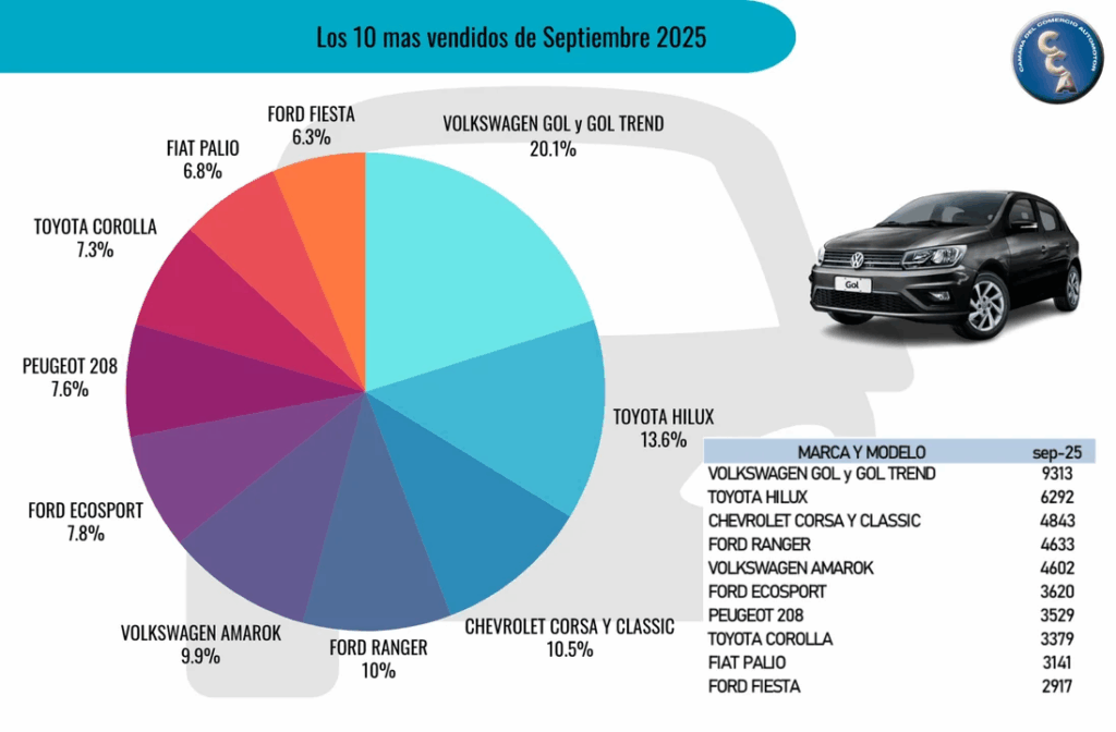 Septiembre volvió a mostrar que el Volkswagen Gol sigue encabezando la preferencia de la gente al adquirir un auto usado. Se comercializaron 9.313 unidades (141 más que en agosto).