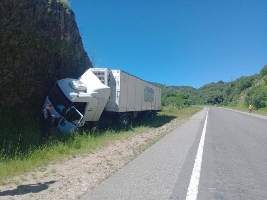Un camión protagonizó un siniestro vial este miércoles en la Ruta Nacional 38, a la altura de la Cuesta del Totoral, luego de quedarse sin frenos y salirse de la calzada, impactando contra el corte del cerro.