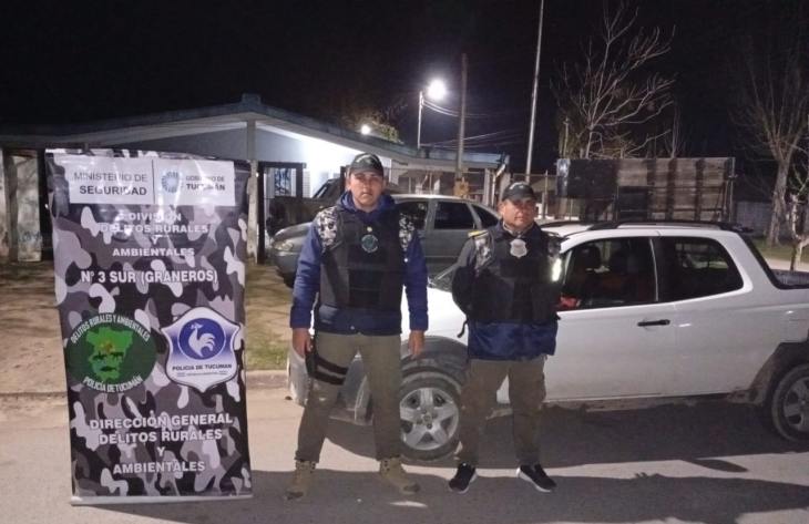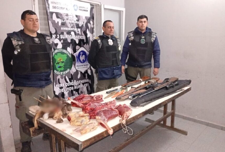 Durante un patrullaje nocturno en La Madrid, efectivos de la División Delitos Rurales y Ambientales N°3 de Graneros interceptaron a cuatro cazadores que circulaban en una camioneta cargada con armas de fuego y animales faenados.