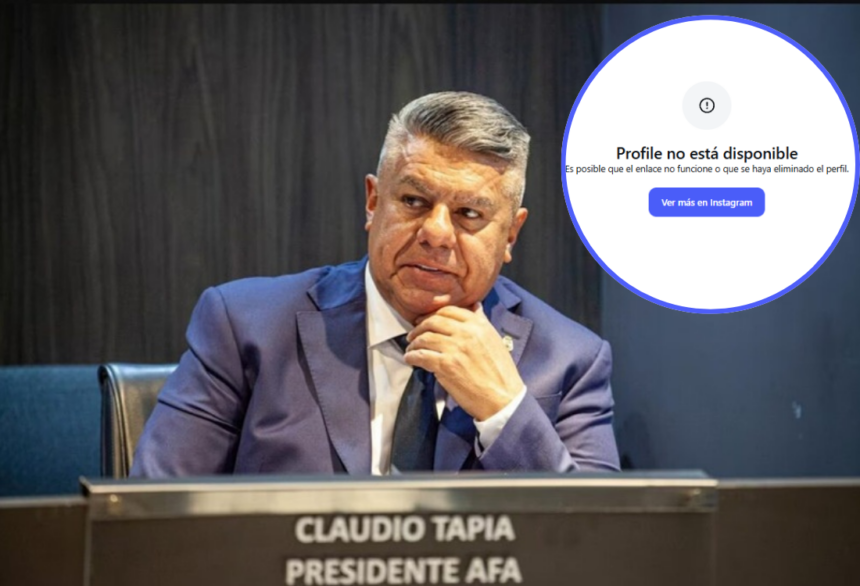 La cuenta oficial de Instagram de Claudio “Chiqui” Tapia dejó de estar visible el mismo día en que el dirigente fue citado a declaración indagatoria por la Justicia. Al intentar ingresar al perfil, la plataforma informa que el usuario no existe o que fue eliminado.
