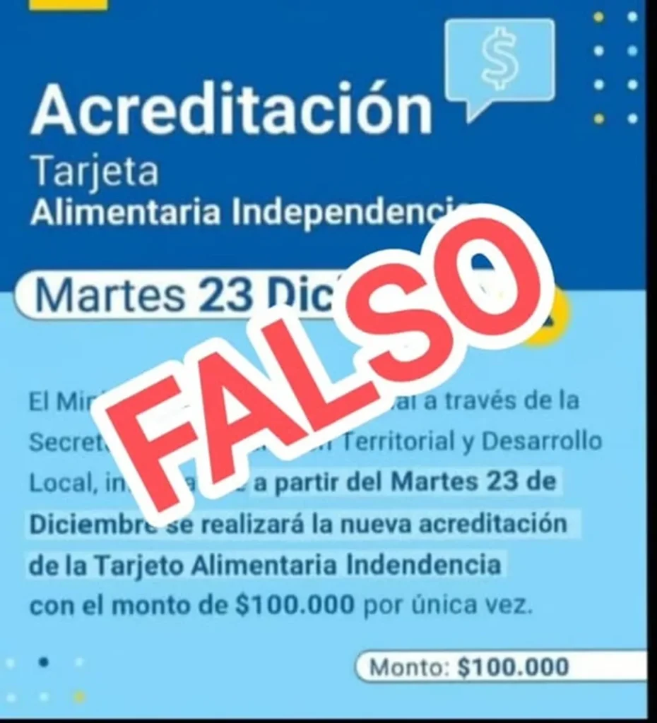 El Ministerio de Desarrollo Social de Tucumán salió al cruce de la circulación de un flyer apócrifo que aseguraba que este martes 23 de diciembre se acreditaría un pago extraordinario de $100.000 para titulares de la Tarjeta Alimentaria Independencia.