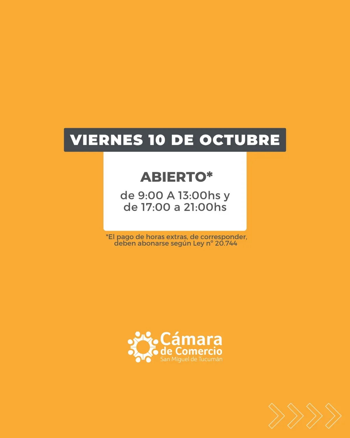 La Cámara de Comercio de San Miguel de Tucumán dio a conocer la modalidad de apertura comercial durante el feriado del «Día del Respeto a la Diversidad Cultural».
