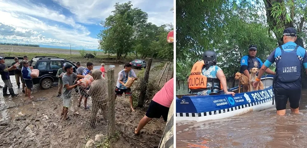 Durante el pico del fenómeno climático, el acceso terrestre fue imposible en varios sectores, donde el nivel del agua superó los tres metros de altura. Ante esa situación, fue necesario utilizar vehículos especiales para poder asistir a las personas atrapadas por el avance del agua.