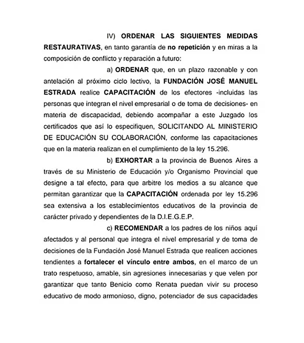 El caso se judicializó. Y la familia Rey obtuvo una medida cautelar provisoria a su favor, que aseguraba la matrícula escolar de sus hijos, Benicio -diagnosticado con Trastorno del Espectro Autista (TEA)- y Renata, para el ciclo lectivo 2025 en el Estrada de City Bell, hasta que se expida la justicia.