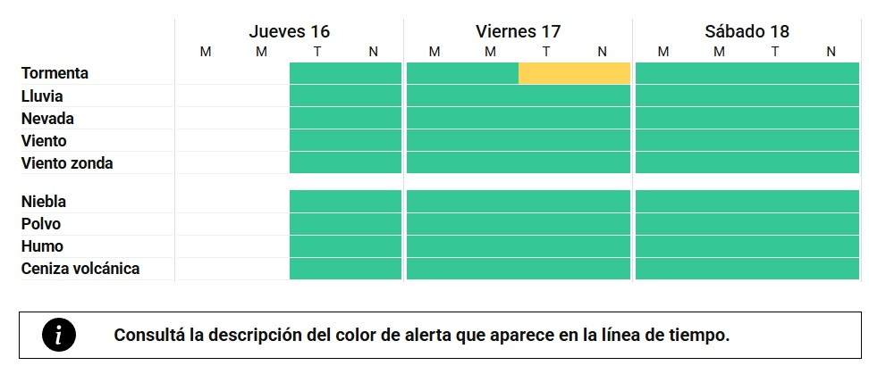 Por su parte, el Servicio Meteorológico Nacional (SMN) emitió una alerta amarilla por fuertes tormentas para la tarde y noche del viernes para Tucumán, período en el que se espera que las precipitaciones alcancen su mayor intensidad en la región. El organismo advierte sobre la posibilidad de lluvias localmente fuertes, acompañadas de actividad eléctrica, ráfagas de viento y ocasional caída de granizo.
