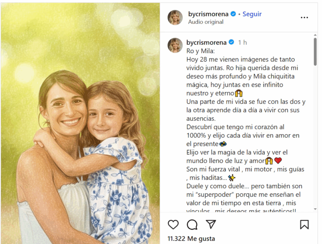 “Hoy 28 se me vienen imágenes de tanto vivido juntas. Ro, hija querida, desde mi deseo más profundo. Y Mila chiquitita mágica, hoy juntas en ese infinito nuestro y eterno”, escribió la productora.