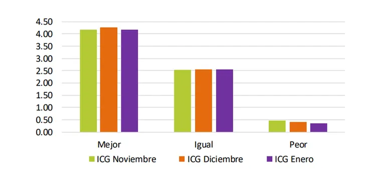 Uno de los contrastes más fuertes aparece al observar las expectativas económicas. Quienes creen que la situación económica mejorará dentro de un año registran un ICG de 4,14 puntos, muy por encima de quienes consideran que se mantendrá igual (2,56) o empeorará (0,35). Este último grupo volvió a mostrar una caída significativa en enero.