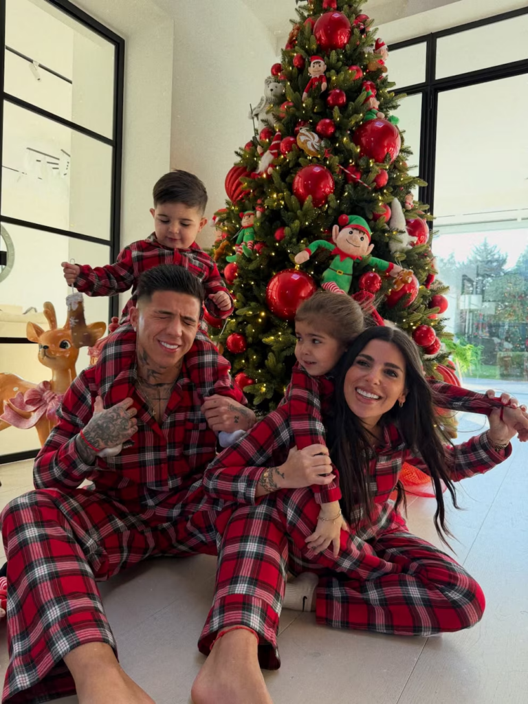 Emiliano Dibu Martínez, por su parte, eligió una postal familiar debajo del árbol con un outfit navideño como ya es una tradición en muchos jugadores. El arquero posó con su esposa Mandinha, sus dos hijos (Santino y Ava) y sus perros. Si bien no lució el mismo atuendo navideño, Cristian Cuti Romero también se fotografió con su pareja Karen Cavaller y sus hijos (Valentino y Lucy) al pie del árbol navideño, al igual que el arquero Walter Benítez.