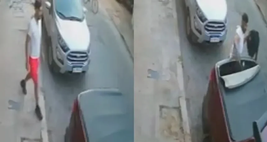 Según se observa en las imágenes de las cámaras de seguridad, el delincuente vestía una remera gris, bermuda roja y zapatillas negras. En cuestión de segundos, tomó la valija y se retiró caminando del lugar, sin que nadie lograra detenerlo.