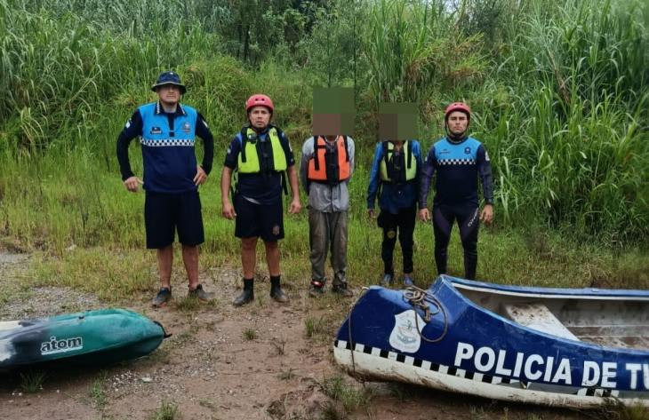 Ante el riesgo inminente, el personal policial decidió intervenir priorizando la vida de los adolescentes. El rescate fue encabezado por el subcomisario Máximo Alderete, junto al oficial auxiliar Lucas Velardez y el sargento Maximiliano Moya, quienes utilizaron un canobote y un kayak para acceder hasta el lugar. Tras asegurar a los jóvenes con elementos de seguridad náutica, lograron trasladarlos hasta la margen oeste del río, donde quedaron a resguardo.