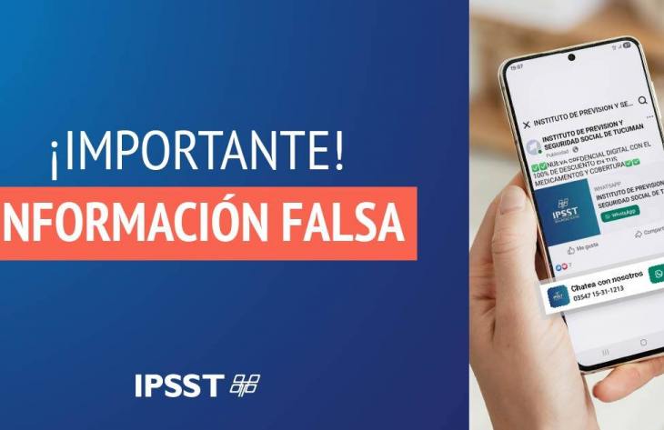 El Instituto de Previsión y Seguridad Social de Tucumán informa a sus afiliados que está circulando en redes sociales una publicación falsa que anuncia una nueva credencial digital con el 100% de descuentos en medicamentos y coberturas.