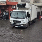 Hay zonas de Capital que ya sufren por la caída de agua. Tal es el caso de Avenida Siria y Chile, donde hay anegamientos y dificultades para circular.