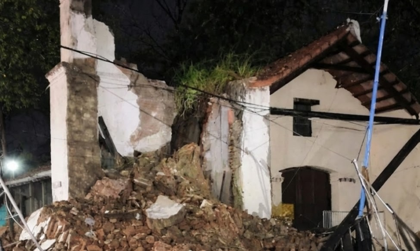 Como consecuencia del fuerte temporal de viento que afectó a la provincia en las últimas horas, se derrumbó una parte de la capilla de Villa Chicligasta, un edificio de gran valor patrimonial que había sido declarado Monumento Histórico Nacional.