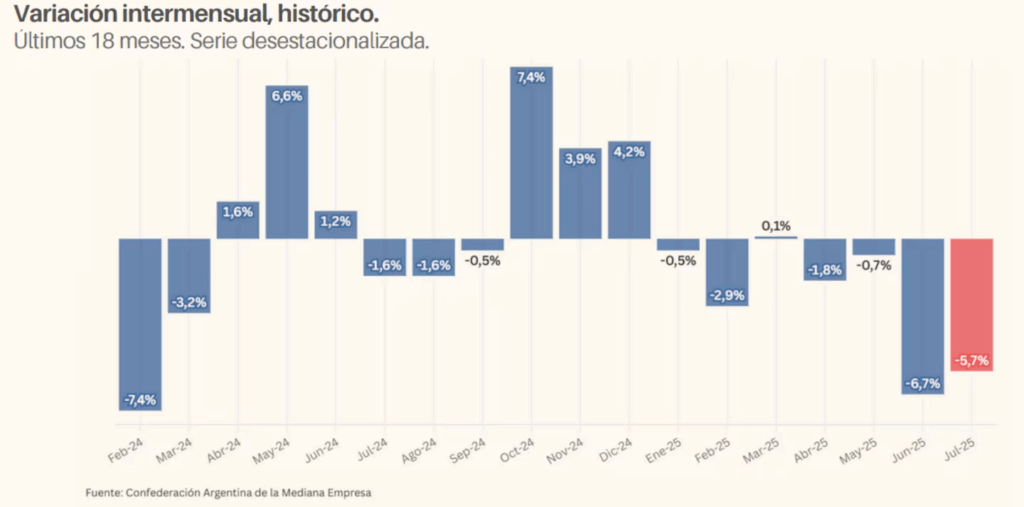 Además, señaló que en julio se registraron movimientos puntuales por el cobro del aguinaldo y el turismo de las vacaciones de invierno, aunque sin modificar la tendencia general.