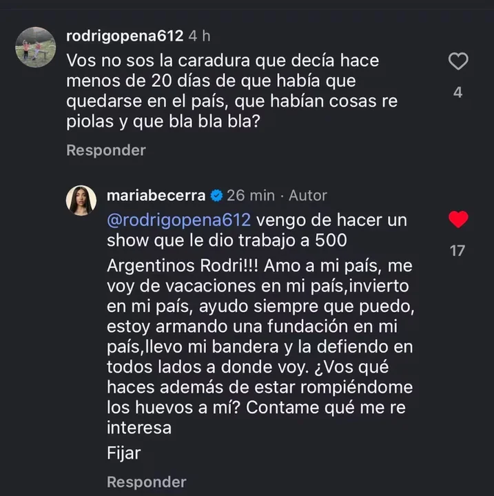 Finalmente, una vez más, María Becerra dejó en claro que no evita la confrontación cuando siente que ponen en duda su coherencia o su compromiso con el país.