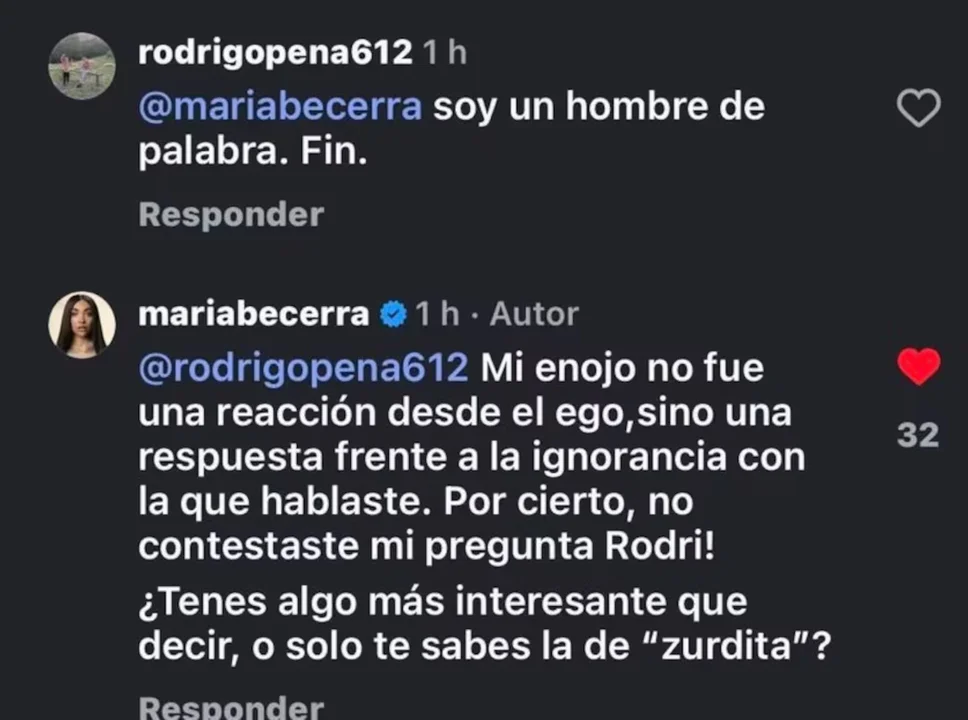 El intercambio no quedó ahí, tras una respuesta escueta del usuario, la cantante volvió a intervenir y aclaró que su enojo no surgió desde el ego, sino como reacción a lo que consideró un comentario ignorante.
