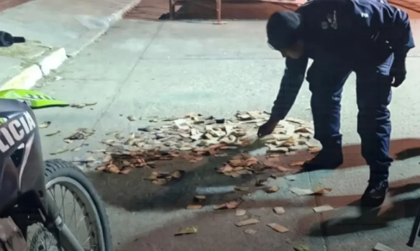 Al arribar al lugar, los uniformados constataron que se trataba de una caja de cartón de color negro que contenía en su interior billetes de distintas denominaciones —$1.000, $500 y $100— con evidentes signos de haber sido alcanzados por el fuego.