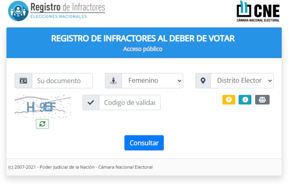 El trámite puede hacerse de forma digital en el Registro de Infractores al Deber de Votar (infractores.padron.gob.ar), presentando la documentación correspondiente: