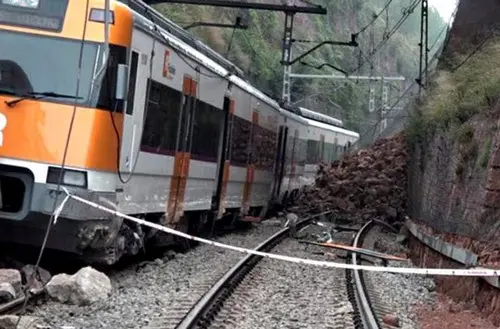El hecho ocurrió entre las localidades de Gelida y Sant Sadurní d’Anoia, en la línea R4, en un contexto marcado por intensas lluvias registradas durante las últimas 24 horas en la región. Según informaron fuentes oficiales, el muro cedió y cayó sobre la vía justo cuando el tren circulaba con pasajeros, provocando el impacto y posterior descarrilamiento.