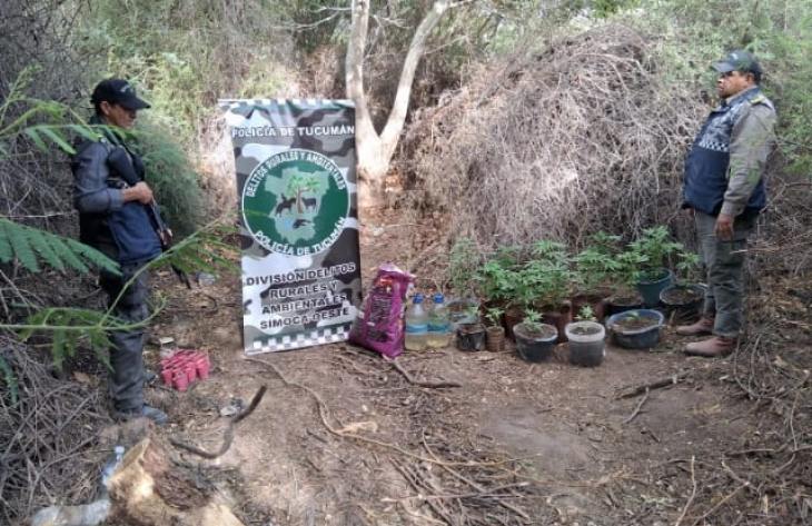 Fue en el barrio La Puntilla donde los efectivos, mientras recorrían un terreno semiabandonado, notaron algo fuera de lugar: una serie de macetas improvisadas escondidas dentro de un canal de riego en desuso. Eran recipientes rústicos, colocados con cuidado y casi camuflados entre la maleza.