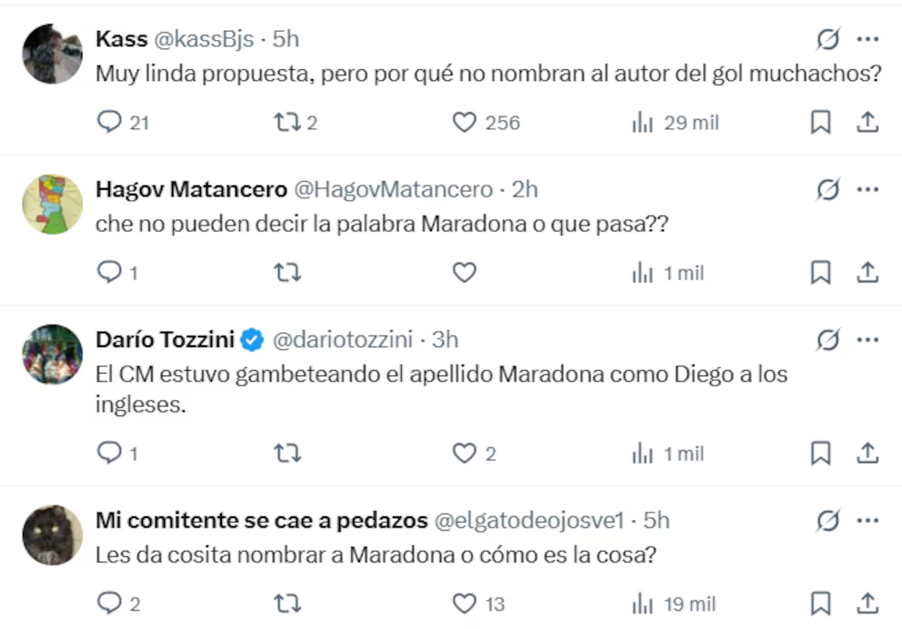 Más allá de la explicación del organismo, los usuarios no tardaron en manifestarse en contra en las redes sociales. Sin ir más lejos, en respuesta al posteo de X del BCRA se pueden encontrar cientos de comentarios protestando por la no mención de Maradona.