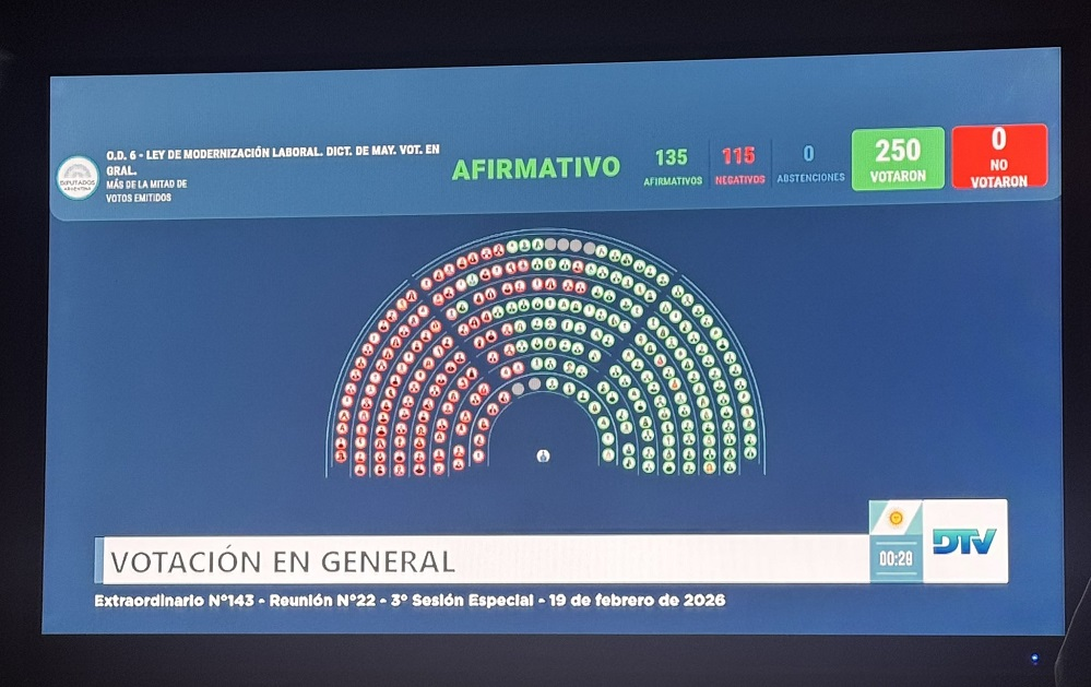 Tras más de 12 horas de sesión, la Cámara de Diputados dio media sanción a la reforma laboral con 135 votos a favor y 115 en contra, sin abstenciones. El proyecto deberá regresar ahora al Senado para continuar su trámite parlamentario.