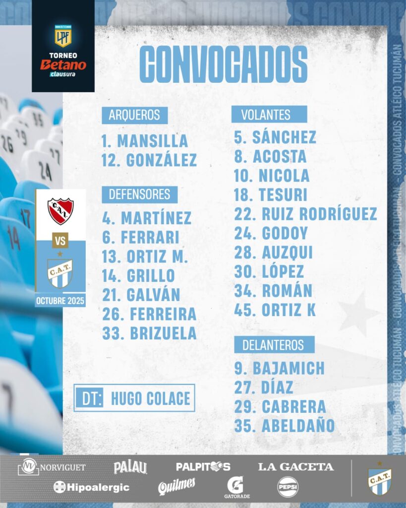 Atlético Tucumán viaja a Buenos Aires para enfrentar a Independiente con novedades clave en la lista de convocados. Renzo Tesuri vuelve a estar disponible tras superar una rotura de ligamentos. Su regreso llega en un momento oportuno, ya que Nicolás Laméndola está suspendido por acumulación de amarillas.
