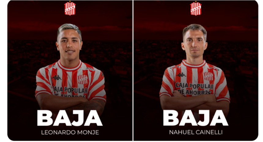 El Club Atlético San Martín informó este lunes que los futbolistas Leonardo Monje y Nahuel Cainelli rescindieron oficialmente sus contratos y ya no forman parte del plantel profesional.