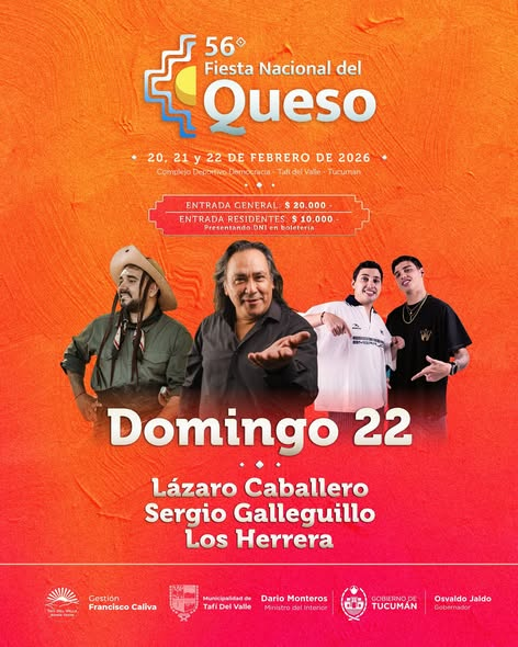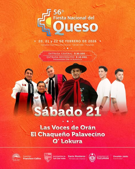 La 56° Fiesta Nacional del Queso ya tiene fecha confirmada y promete tres jornadas a puro folclore y tradición en el corazón de los Valles Calchaquíes. El encuentro se realizará el viernes 20, sábado 21 y domingo 22 de febrero en el Complejo Deportivo Democracia de Tafí del Valle, con una grilla artística de primer nivel que anticipa una gran convocatoria de público.