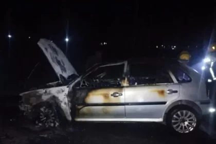 Un auto fue consumido por el fuego a metros de la rotonda de acceso a Acheral