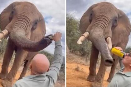 Turista español indigna a Kenia al verter cerveza en trompa de elefante