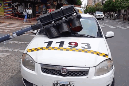 ¿Y la Municipalidad? Un semáforo cayó sobre un taxi en Santiago y Monteagudo
