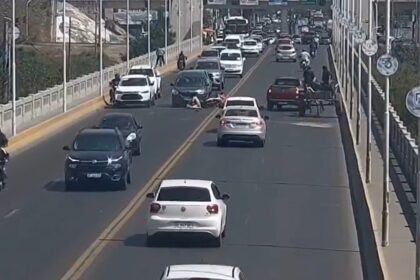 Una moto que circulaba con tres personas chocó contra un carro y casi ocasiona una tragedia