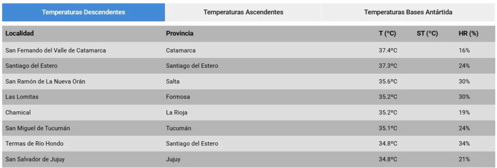 El ranking de temperaturas ubicó a la provincia en sexto lugar, detrás de La Rioja, Formosa, Salta, Santiago del Estero y Catamarca, reflejando un panorama térmico provincial que se inscribe en una ola de calor regional y que puede implicar mayores demandas en salud pública y en recursos hídricos.
