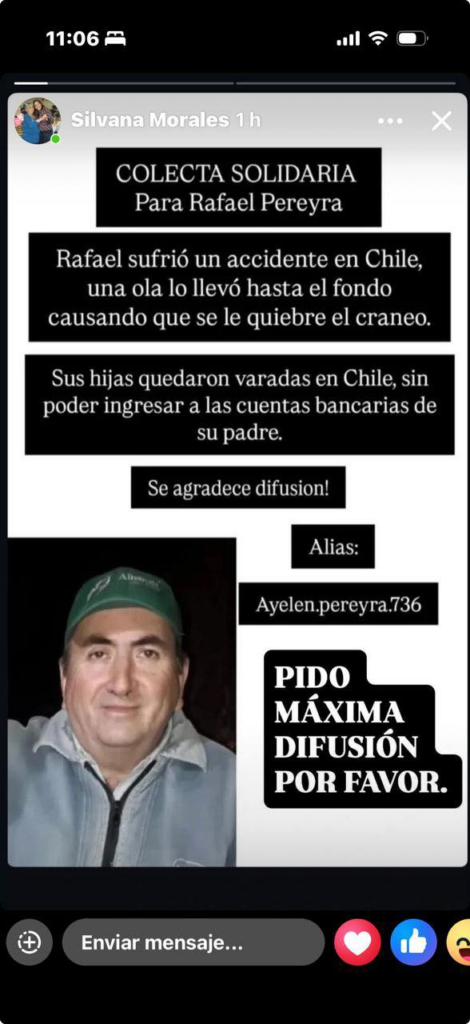 Actualmente, los cuatro hijos de Rafael permanecen en Chile sin poder regresar a Tucumán. Se trata de dos hermanas mellizas de 26 años, una joven de 23 y el menor de 21. Según relataron, el vehículo familiar quedó en ese país y ninguno de ellos sabe manejar, lo que dificulta cualquier intento de retorno. A esto se suma la incertidumbre sobre el tiempo de internación, que podría extenderse por semanas o incluso meses.