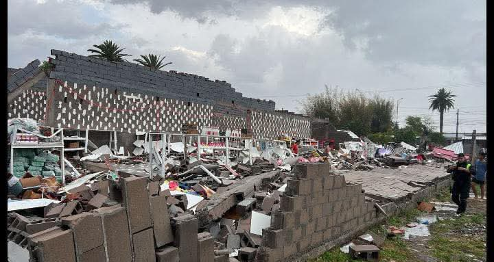 Un tornado con intensas ráfagas de viento provocó este jueves por la tarde el derrumbe de un supermercado chino ubicado sobre la avenida principal de Delfín Gallo, según informó oficialmente la Comisaría local.