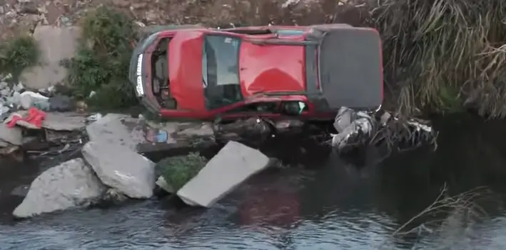 La escena generó sorpresa entre los vecinos y motociclistas que transitaban la zona, ya que el vehículo rojo quedó visiblemente destrozado. Testigos señalaron la ausencia de barandas o medidas de contención en ese tramo del canal, lo que podría haber facilitado la caída.