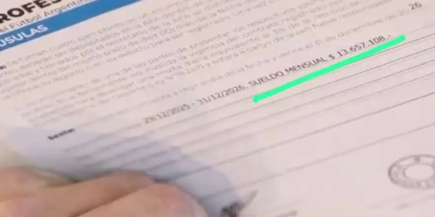 En una de las tomas iniciales —un plano cerrado que enfocaba el documento y la mano del volante mientras sostenía la lapicera— se alcanzó a leer con claridad el monto fijado: $13.657.108 mensuales. La filtración no pasó inadvertida y rápidamente comenzó a circular en redes sociales, generando comentarios y debate entre los hinchas.
