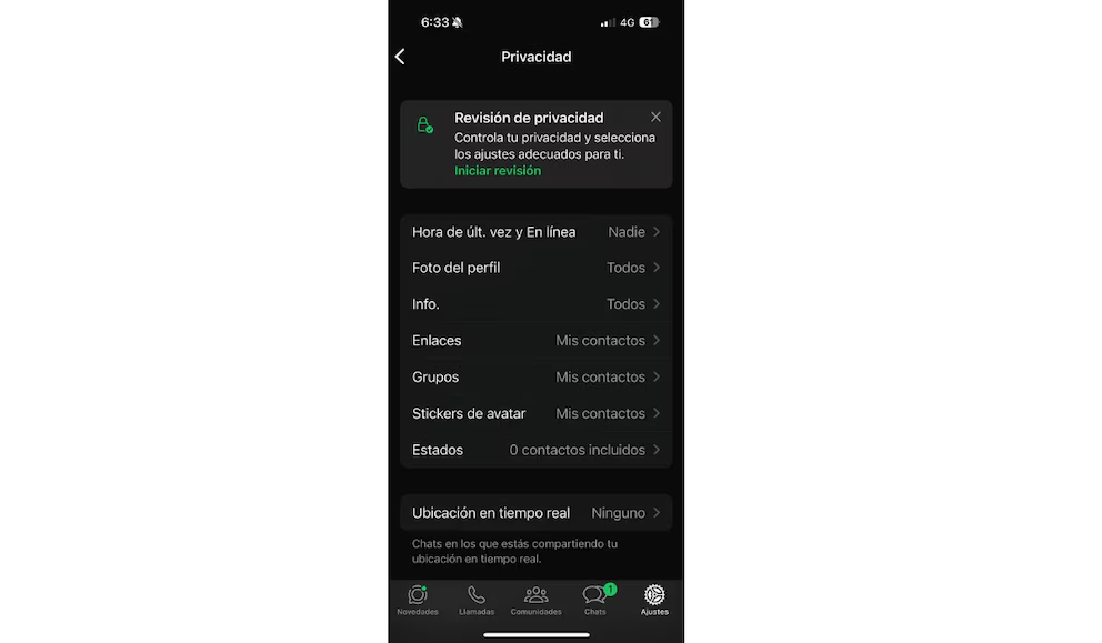 Por ejemplo, es posible ocultar la última conexión, activar los mensajes temporales, ocultar la foto de perfil o limitar quién puede ver la información personal. Estas opciones funcionan como una especie de “pausa” en la interacción, ideal para quienes desean mantener mayor privacidad, evitar interrupciones o simplemente tener un respiro de la aplicación sin dejar de estar conectados a internet en el teléfono.